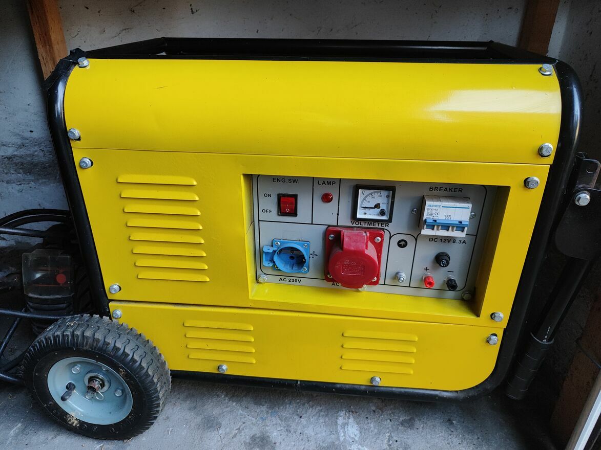 Sprzedam praktycznie nowy agregat prądotwórczy ( użyty tylko jeden raz ) MELLFORD MLF8640V o mocy 7.3 KW/400V oraz 3.9 KW/230.Urządzenie wyposażone w gniazdo siłowe 380V oraz gniazdo 230V. Rodzaj prądownicy Jednofazowa o wartości 220V/230V oraz Trójfazowa o wartości 380/400V. Posiada stabilizator napięcia. Agregat ma wbudowany woltomierz oraz prostownik z gniazdem 12V.